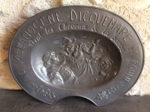 Antique French Solid Pewter Barbers Bowl with Impressed Decoration