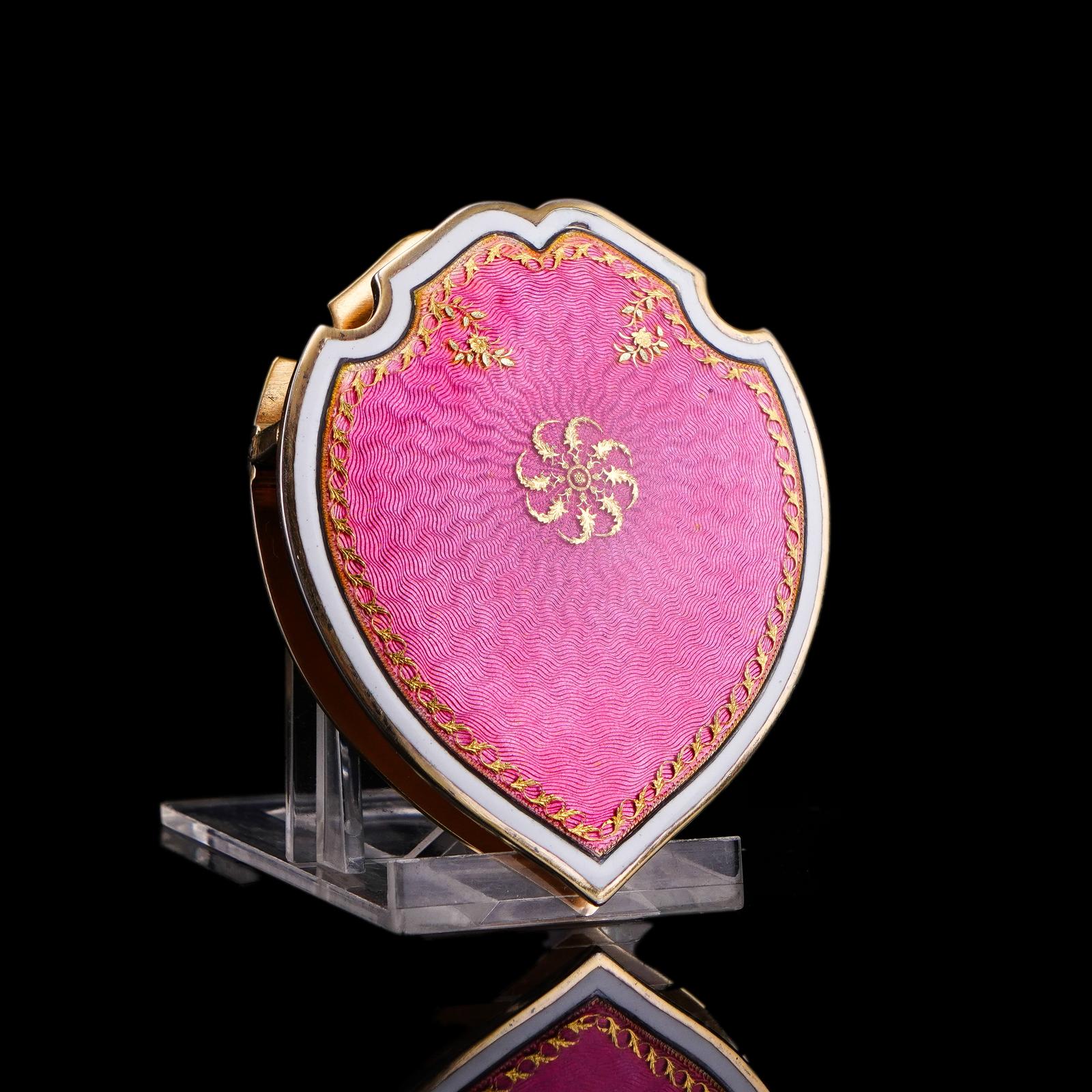 Antique French Solid Silver Gilt Pink Enamel Guilloche Large Paper Clip c.1880