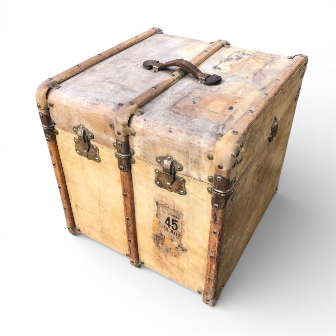 Barnaby's of Battle has clarified that the Antique French Square Steamer Trunk Covered with Pig Skin Leather (LA565638) is genuinely of the period declared with the date/period of manufacture being 1910s-1920s