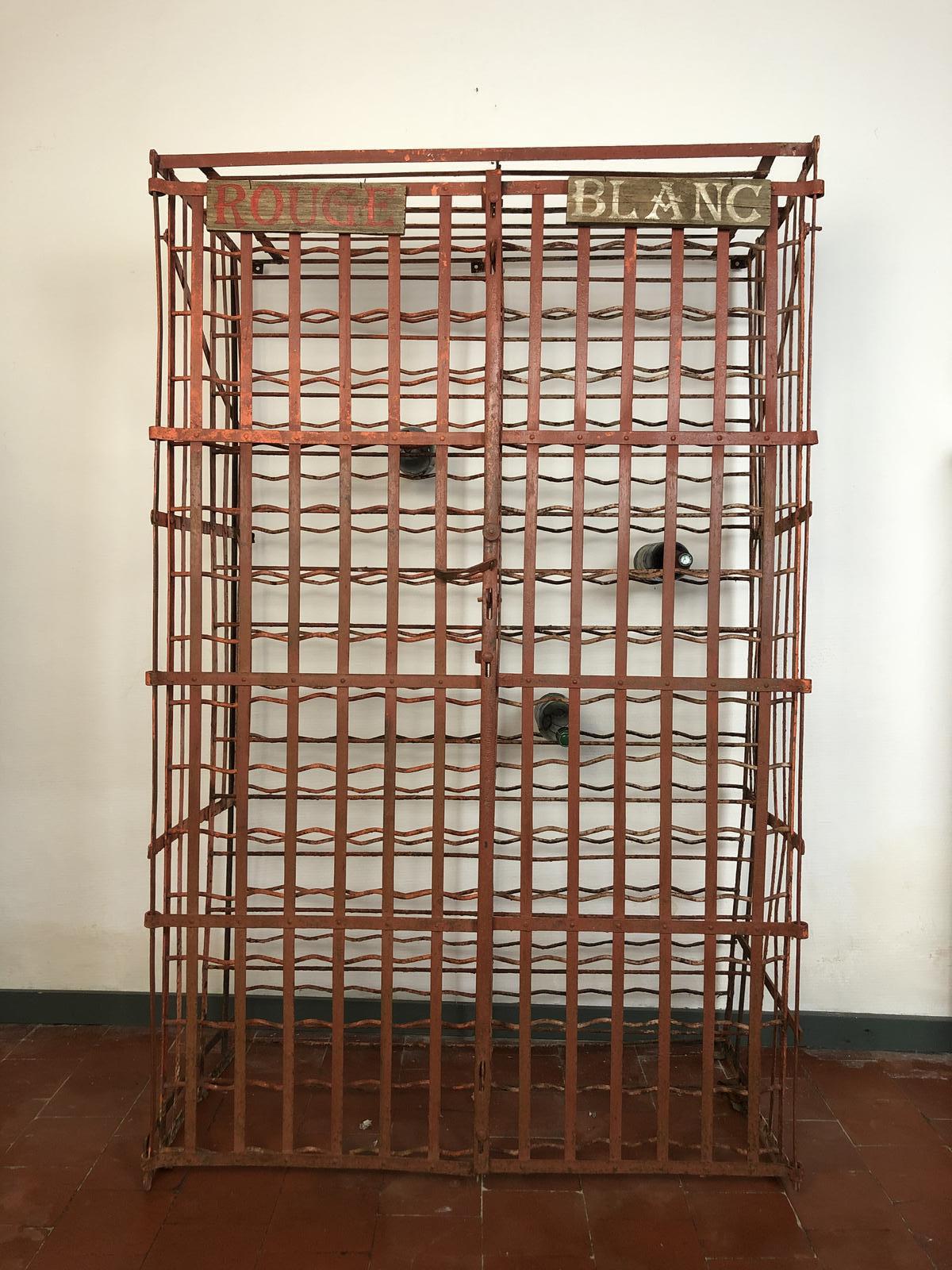 Antique French Strap Metal Original Wine Rack Cage Rigidex Lockable