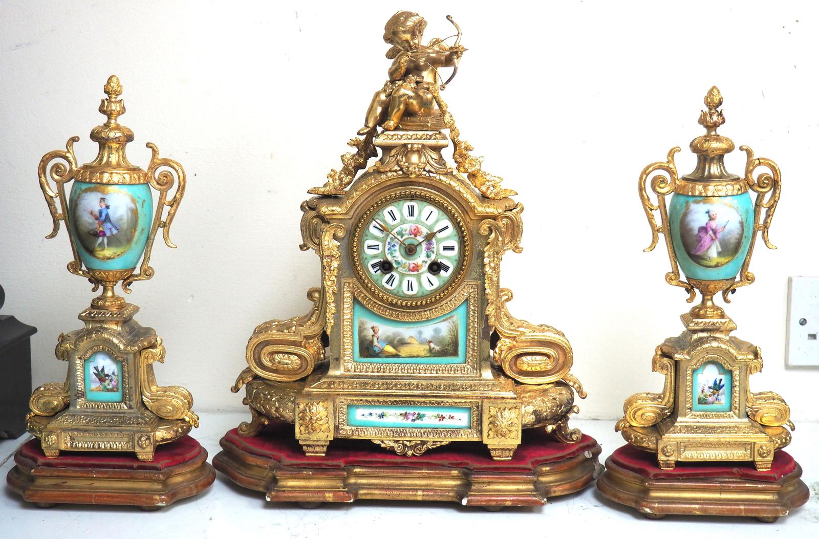 Antique French Striking Turquoise Sevres Gilt Mantel Clock (1 of 18)