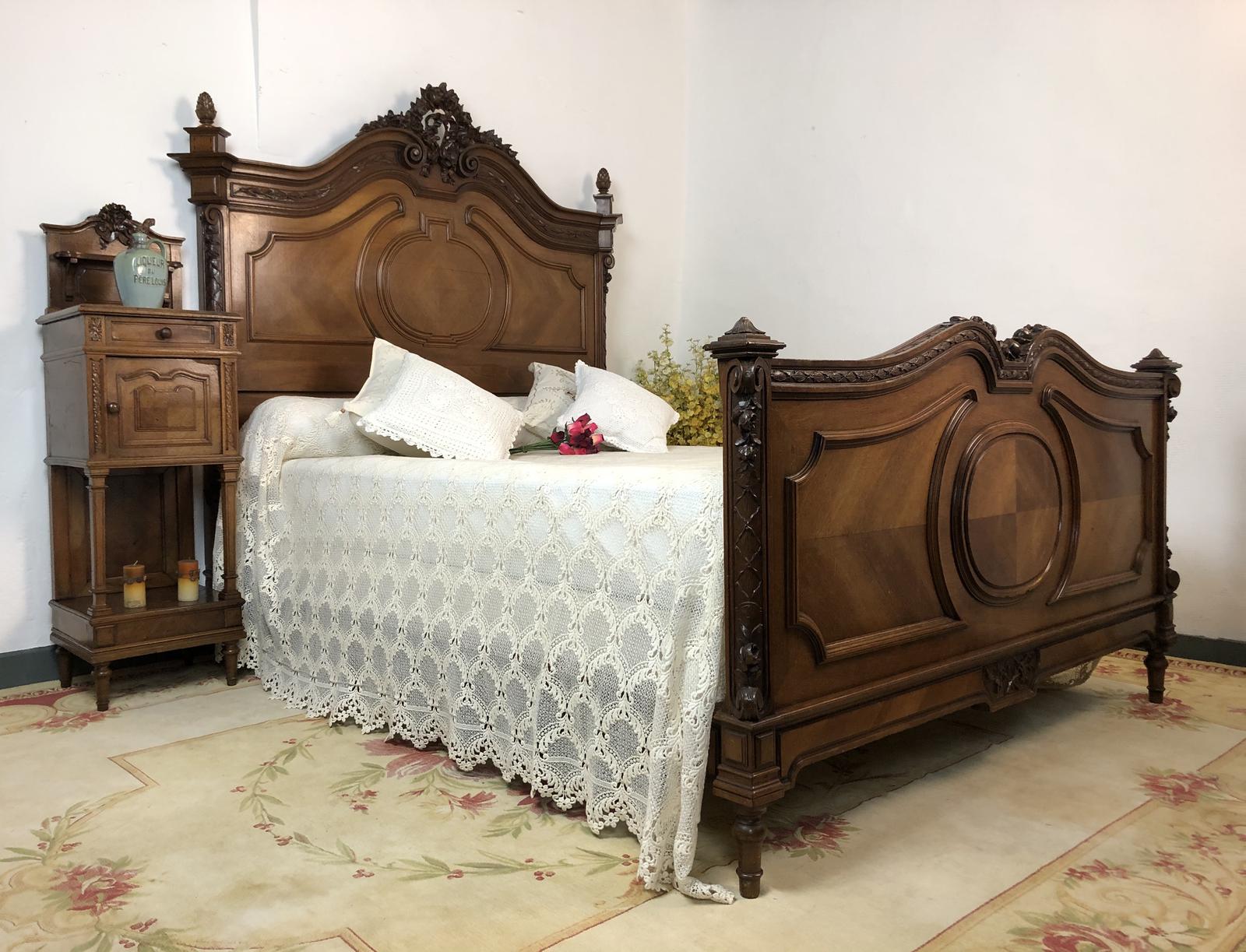 Antique French Stunning Huge Oak Bed Frame & Pot Cupboard