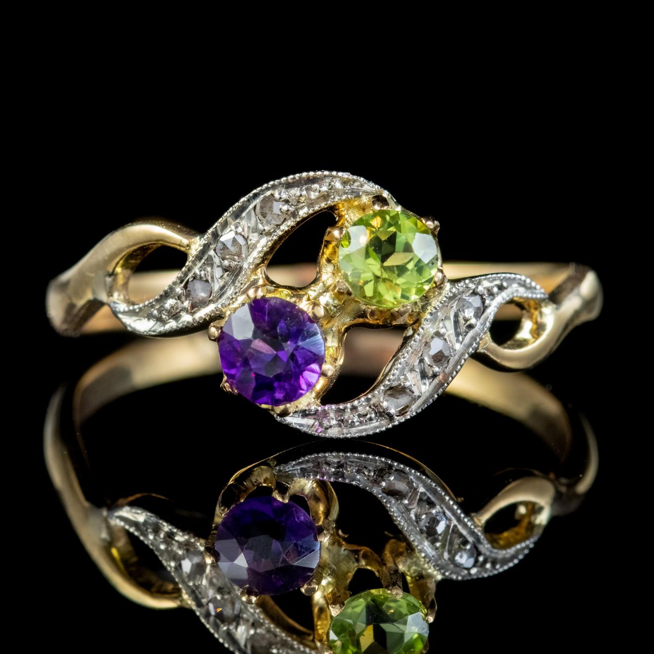 Antique French Suffragette Twist Ring 18ct Gold Amethyst Diamond Peridot Circa 1915