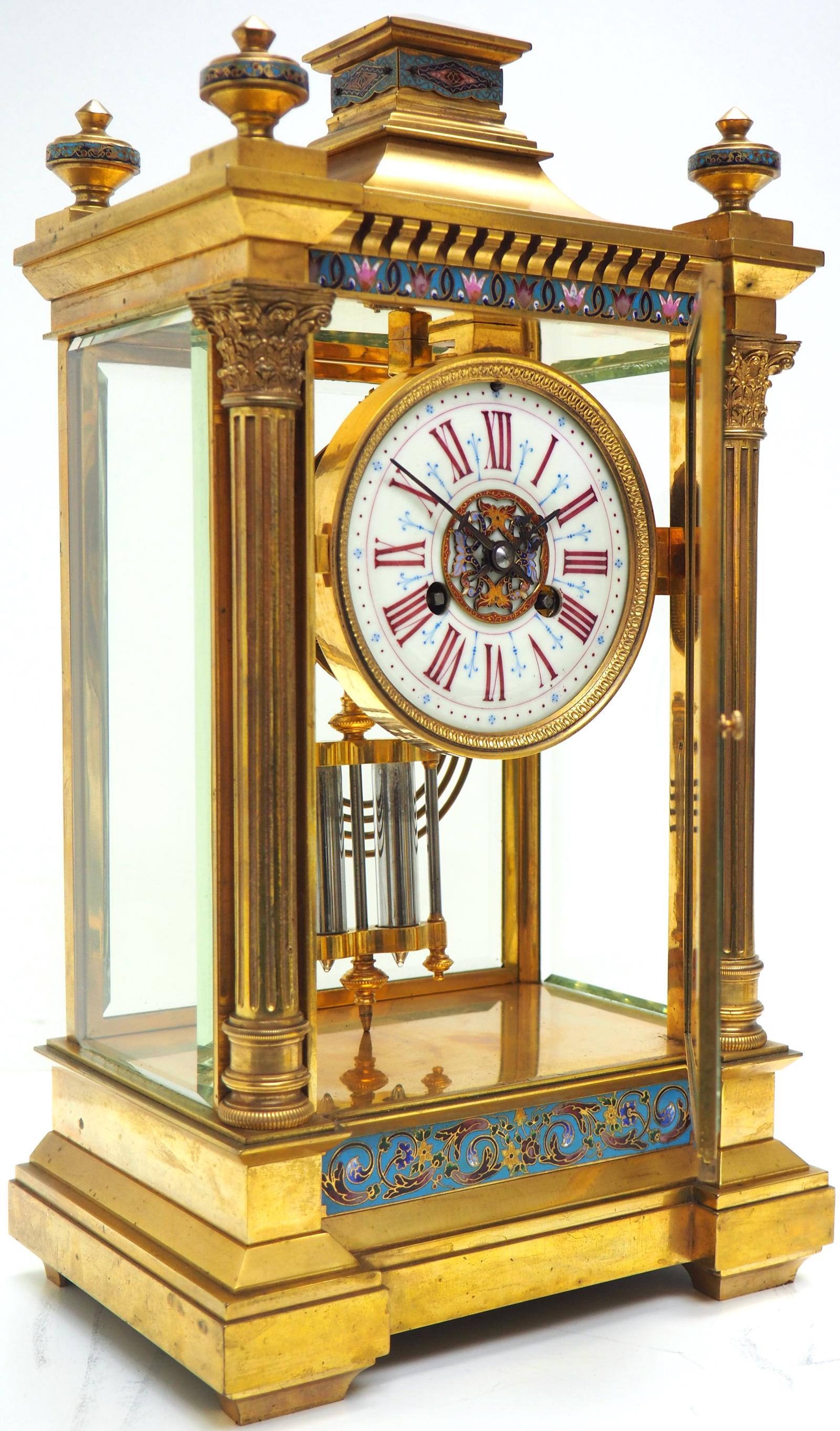 Antique French Table Regulator with Compensating Pendulum 8 Day 4 Glass Mantel Clock