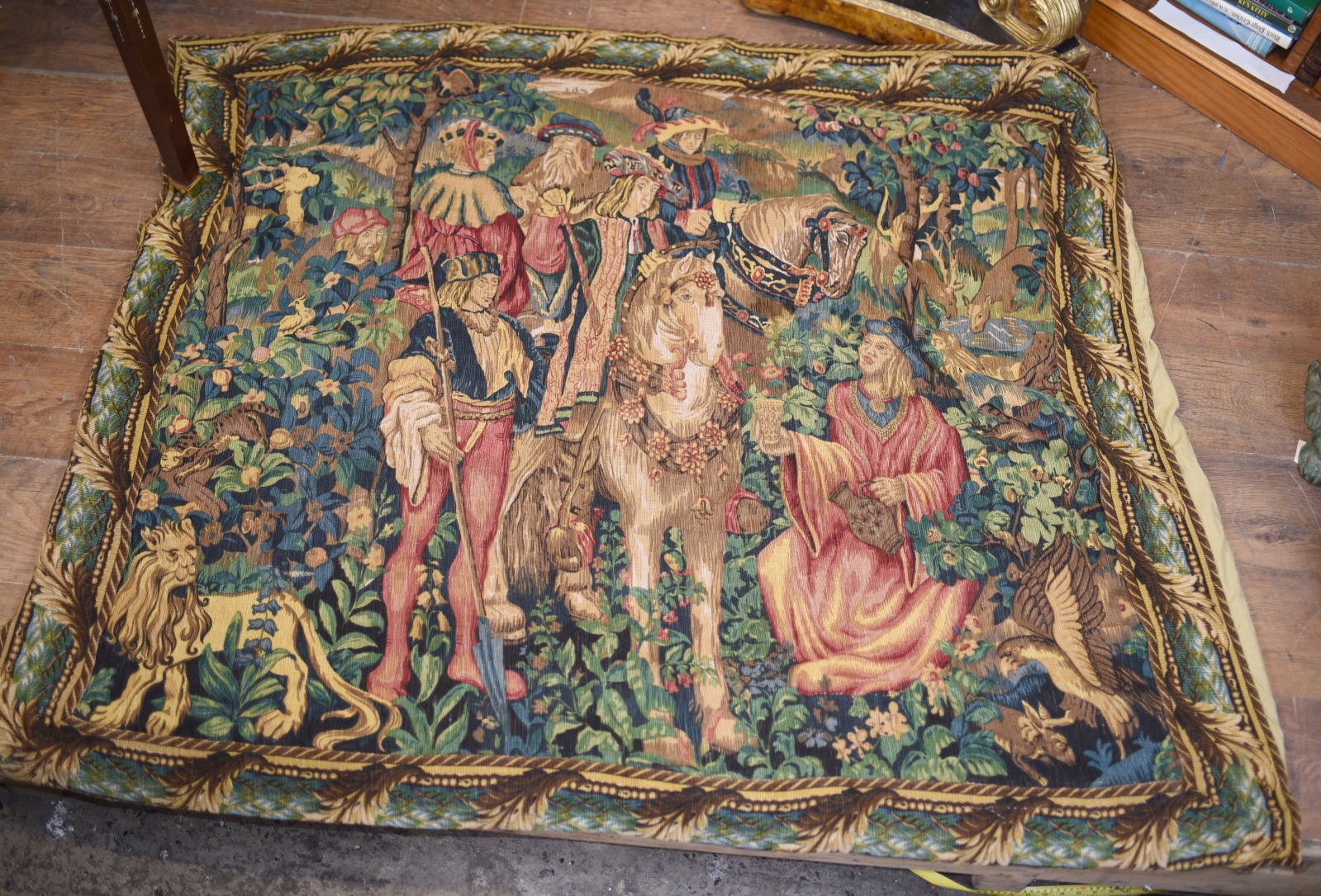 Antique French Tapestry Hanging Medieval Pilgrim Interiors Horse