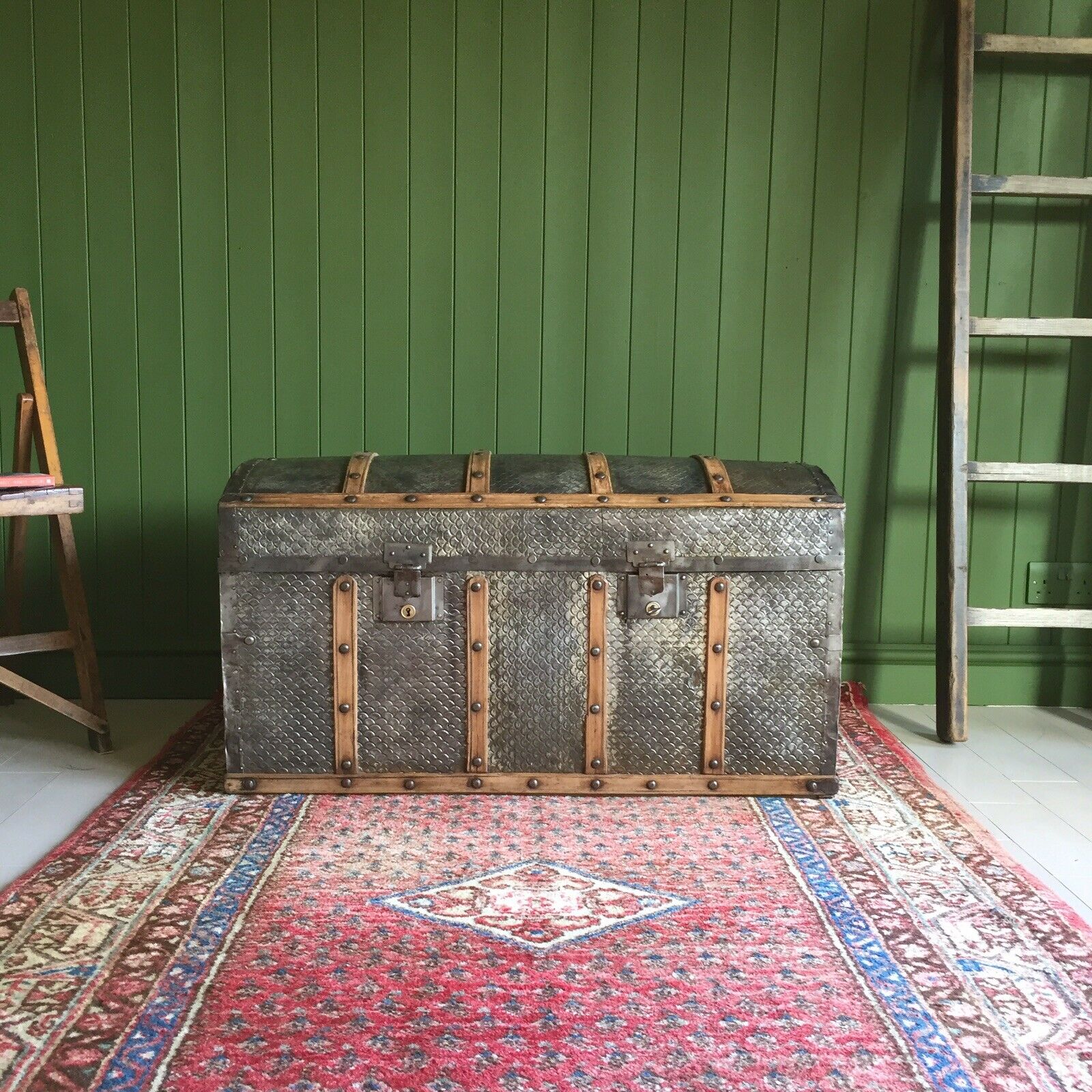 Antique French Trunk Old Dome Carriage Chest Victorian Rustic Box Medieval Gothic Storage Trunk + Key