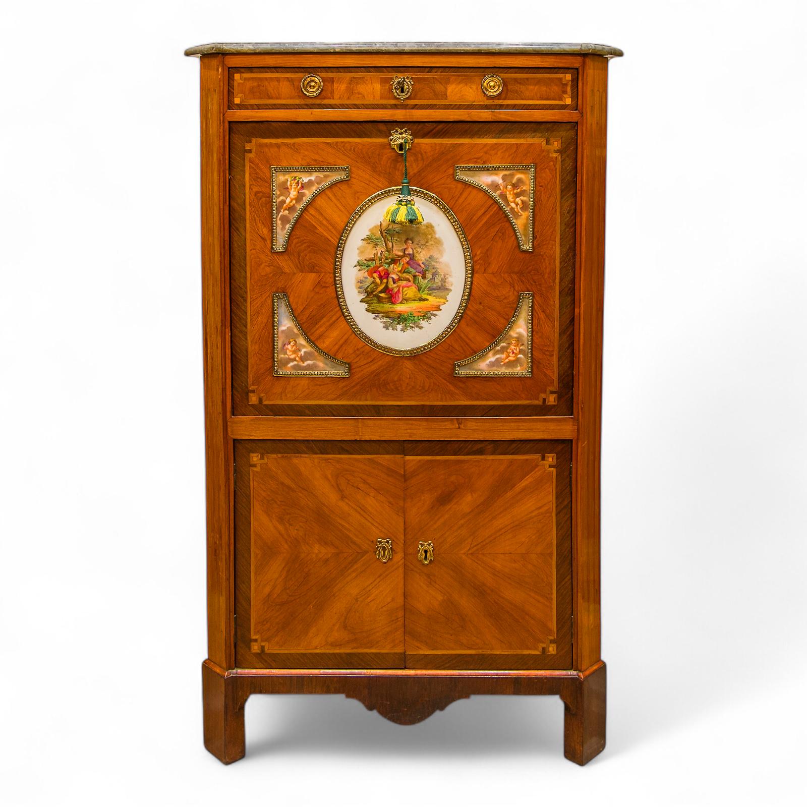 Antique French Tulipwood & Kingwood Secretaire Cabinet with Porcelain Panels