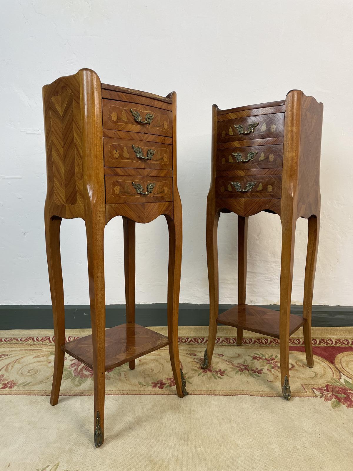 Antique French Walnut Marquetry Bedside Tables Petite Cabinets