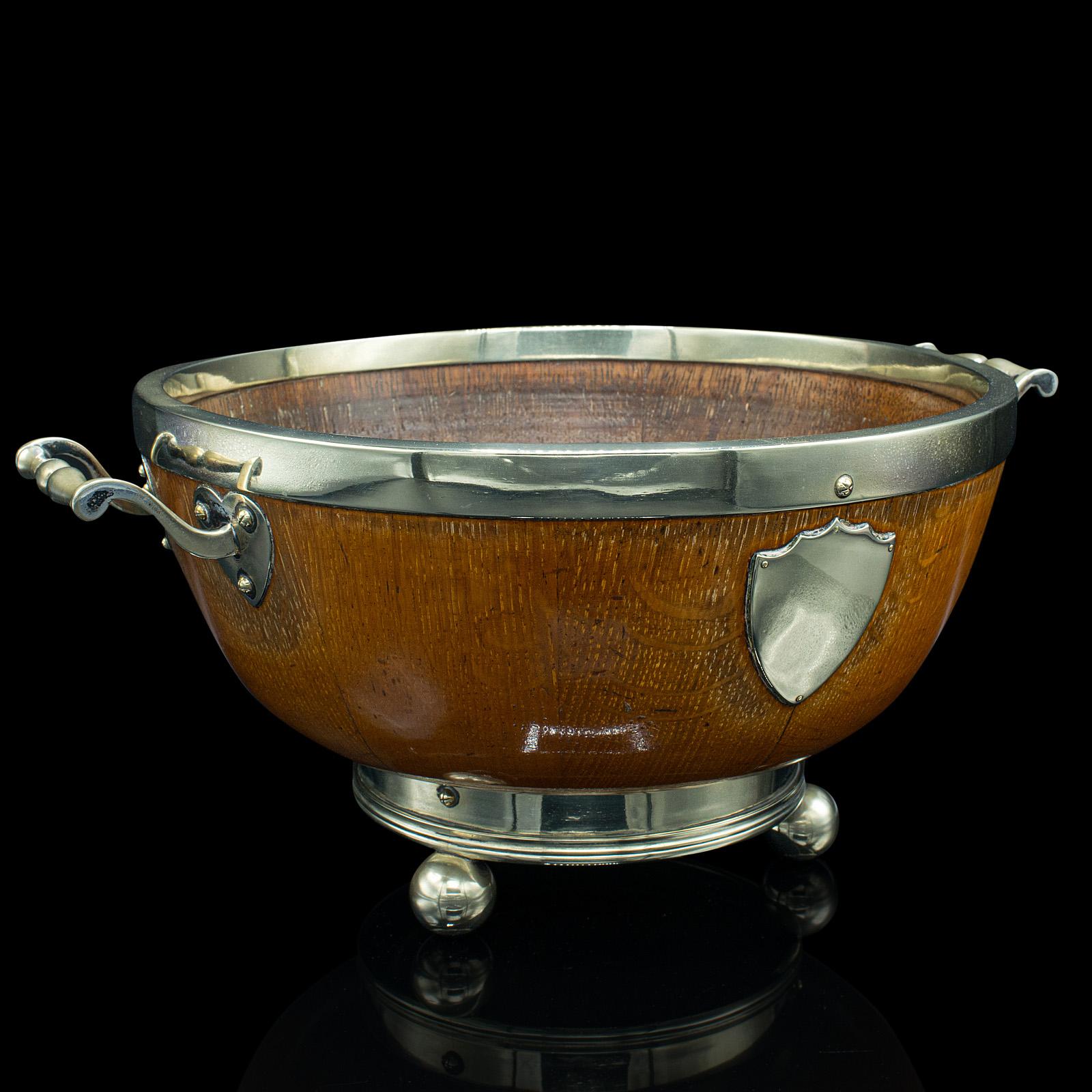 Antique Fruit Bowl, English, Oak, Silver Plate, Country House, Dish, Victorian
