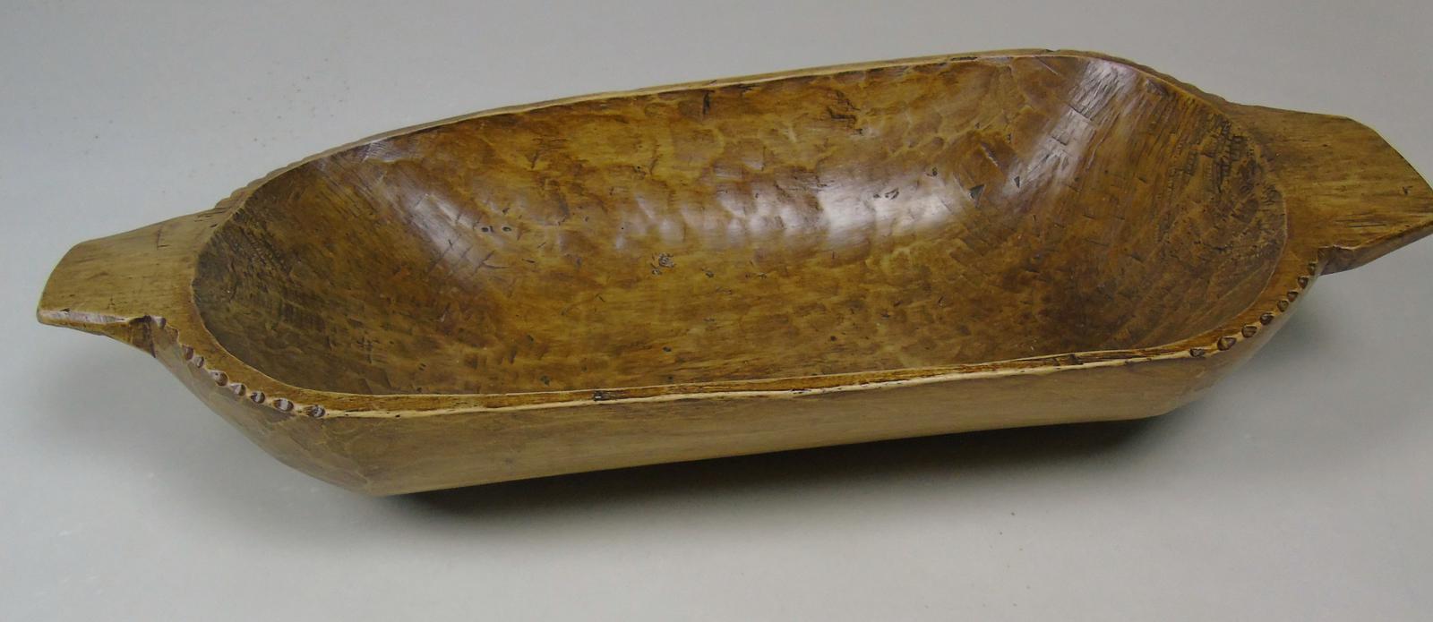 Antique Fruitwood Hand Adzed Long Bowl (1 of 7)