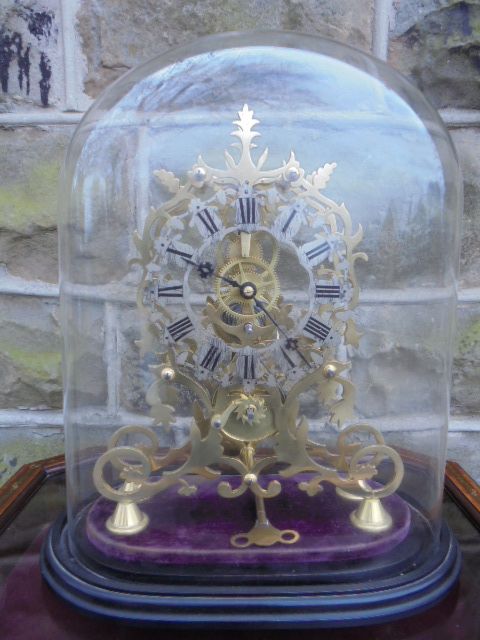 Antique Fusee Movement Skeleton Clock Under Glass Dome c.1860