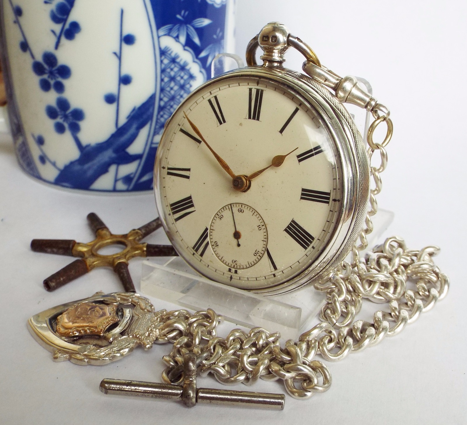 Antique Fusee Pocket Watch by Johnson, Sheffield, with Silver Albert