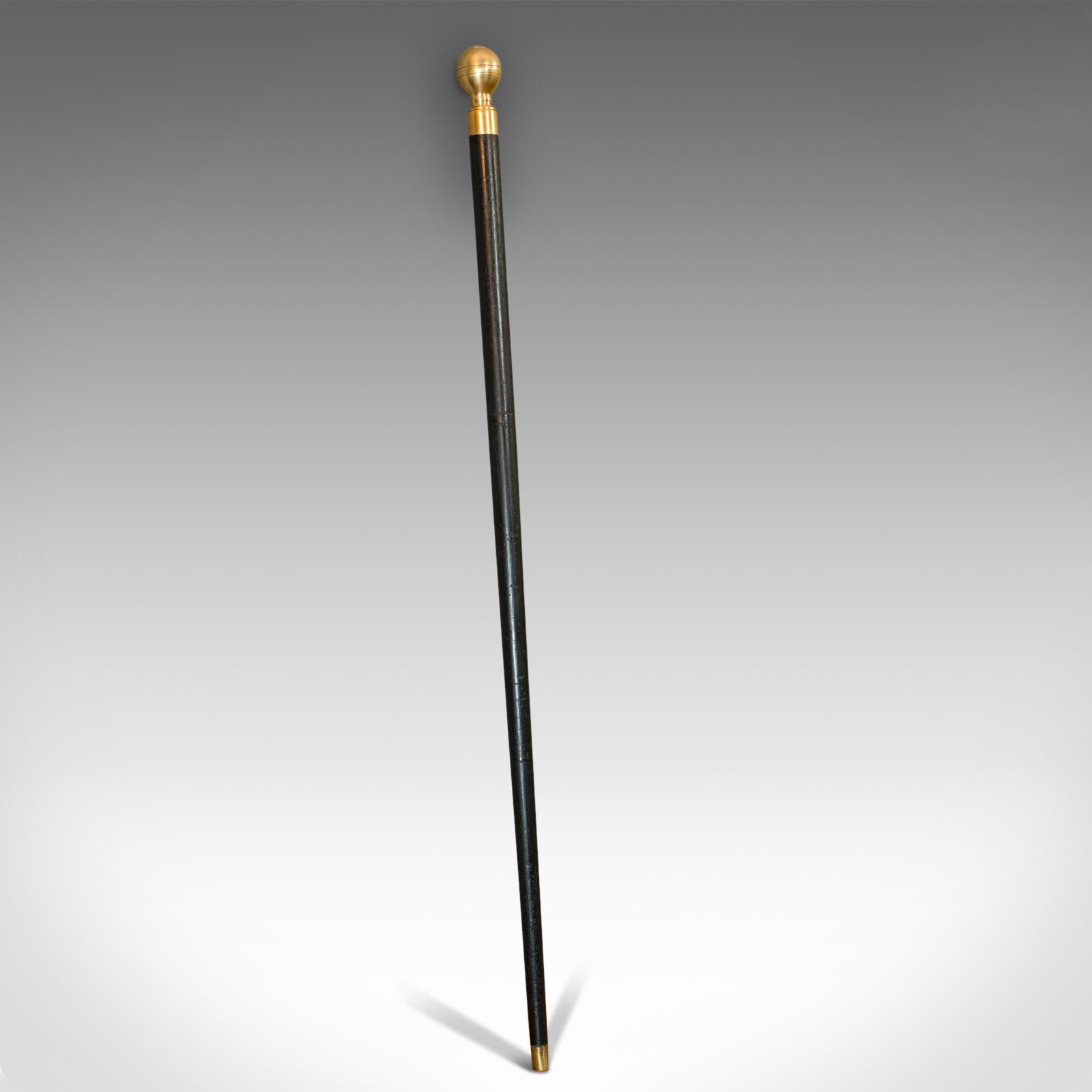 Antique Gadget Cane, English, Mahogany, Brass, Walking Stick, Edwardian c.1910