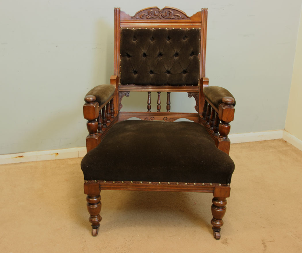 Antique Gentlemans Victorian Walnut Button Back Chair
