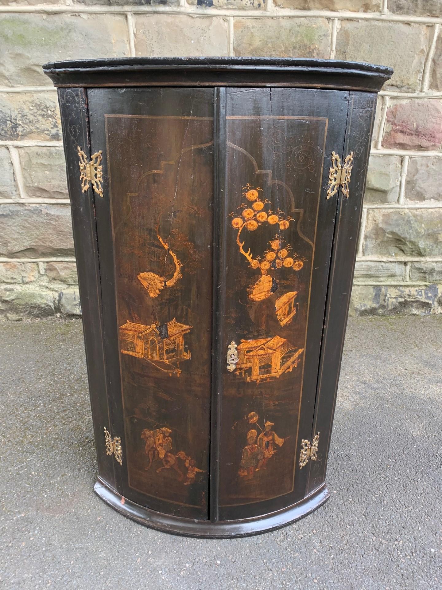 Antique Geo III Lacquered Chinoiserie Corner Cabinet