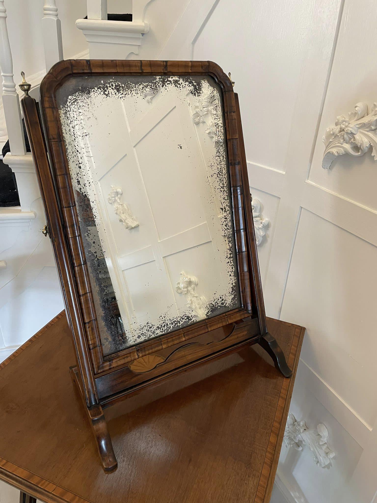 Antique George I Quality Figured Walnut Dressing Table Mirror