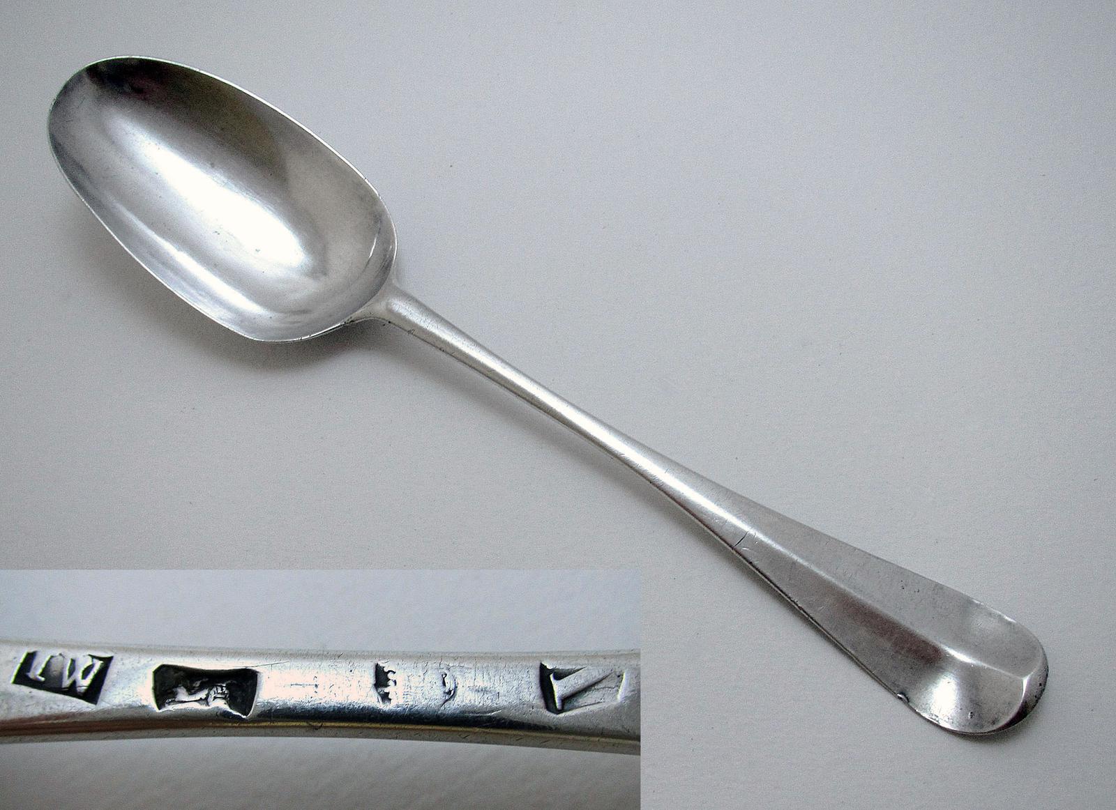 Antique George II (1735) Solid Sterling Silver English Georgian Ribbed Hanoverian Table Spoon