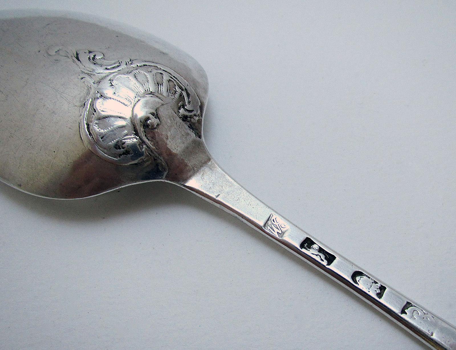 Antique George II (1757) Solid Sterling Silver English Georgian Hanoverian Fancy Shell Back Table Spoon
