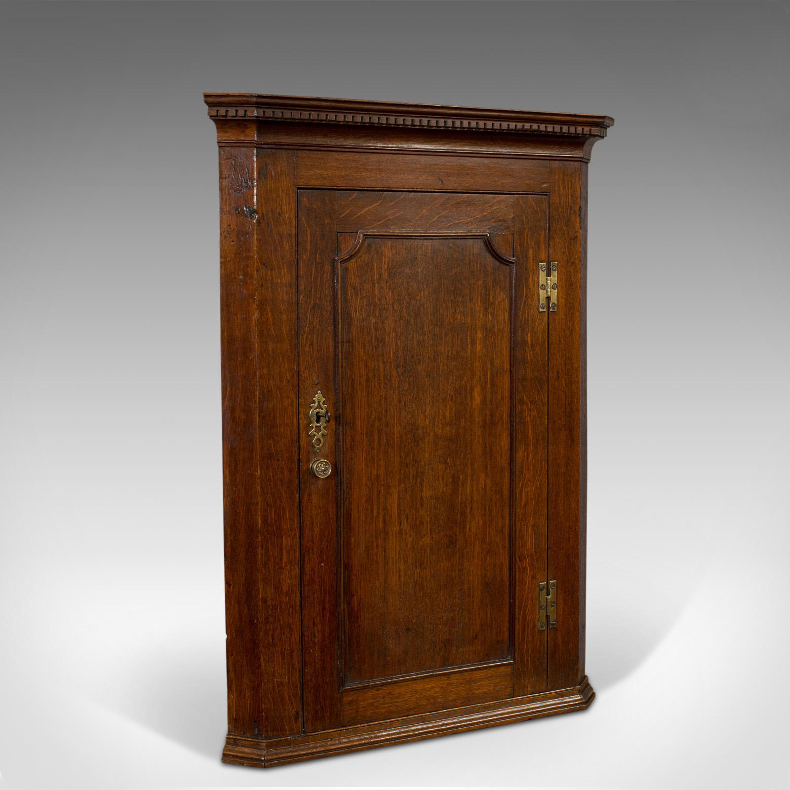 Antique George III Corner Cupboard, English, Oak, Wall Cabinet c.1800