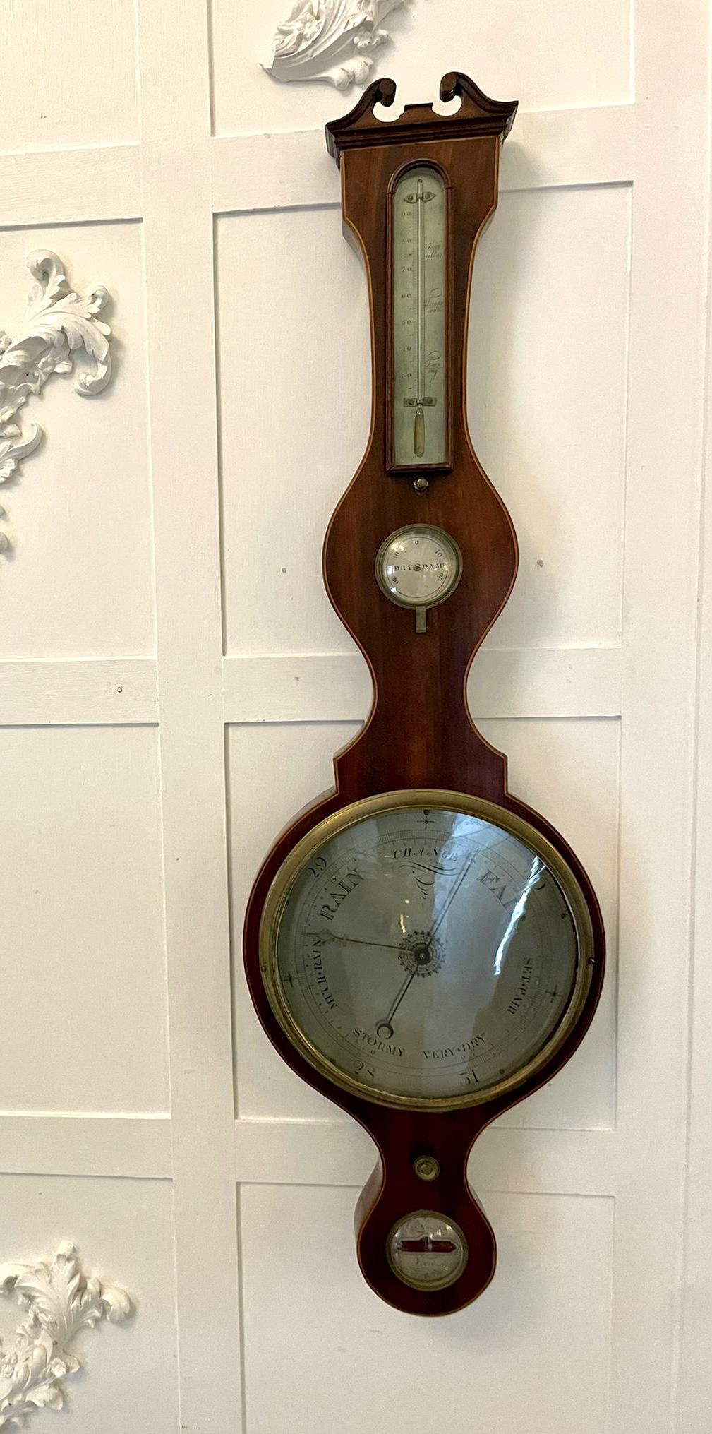 Antique George III Mahogany & Boxwood Inlaid Banjo Barometer