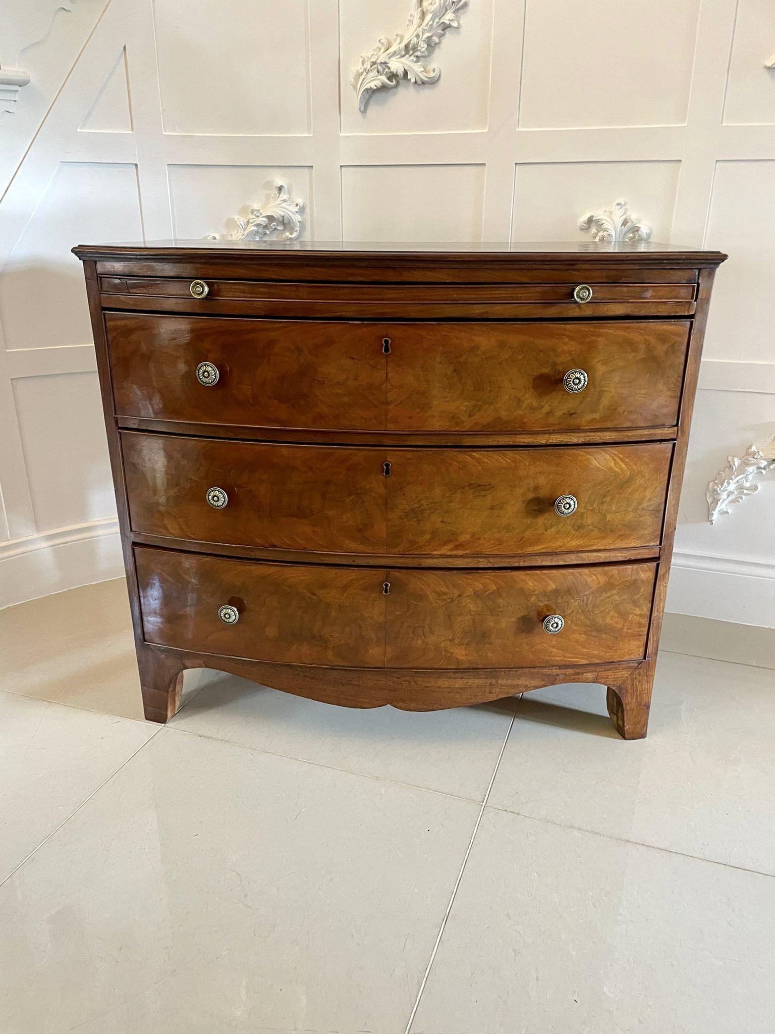 Antique George III Quality Figured Mahogany Bow Front Chest of 3 Drawers