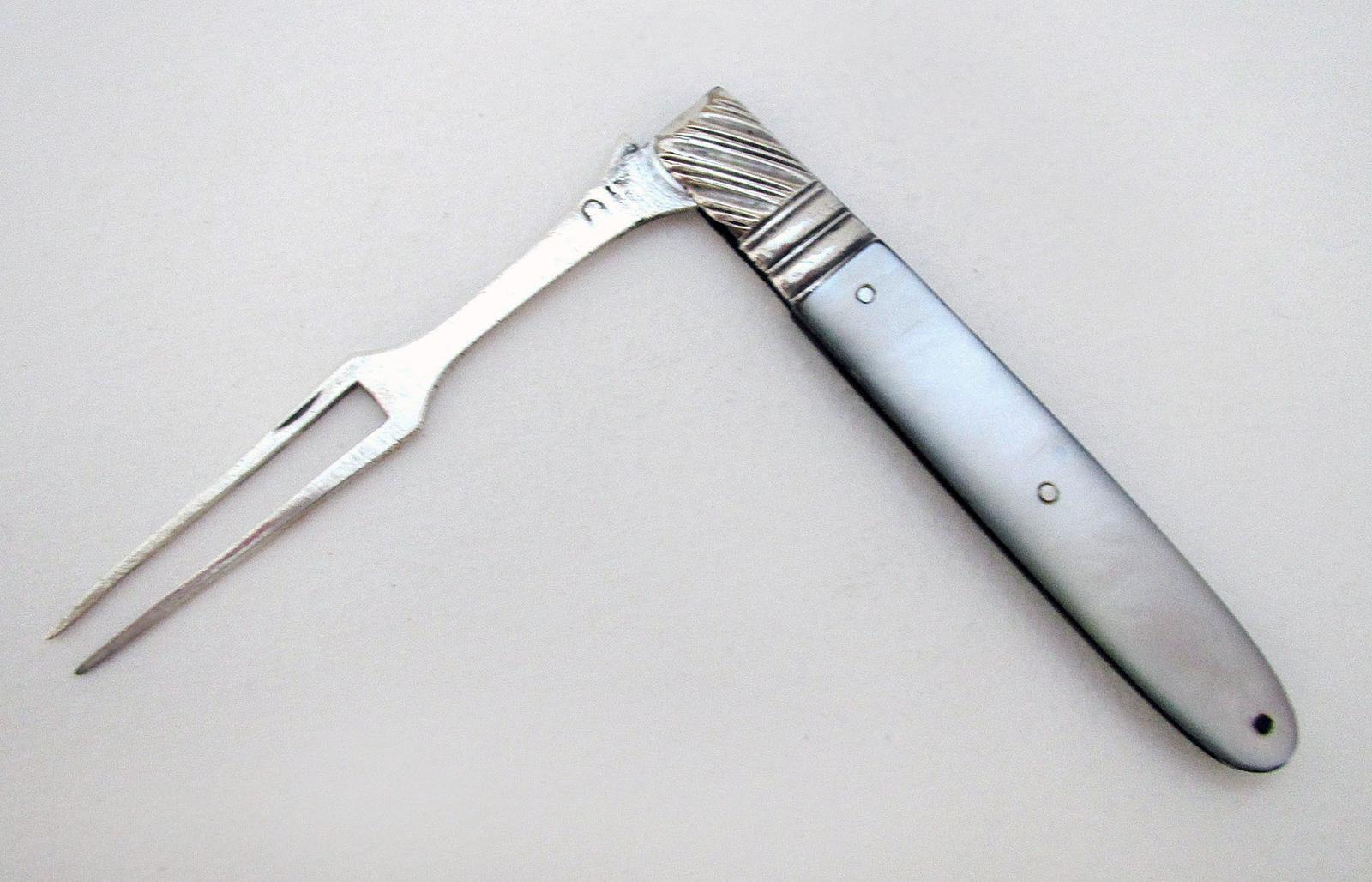 Antique George III Solid Sterling Silver & Mother of Pearl English Georgian Folding Pocket Fruit Fork c.1800