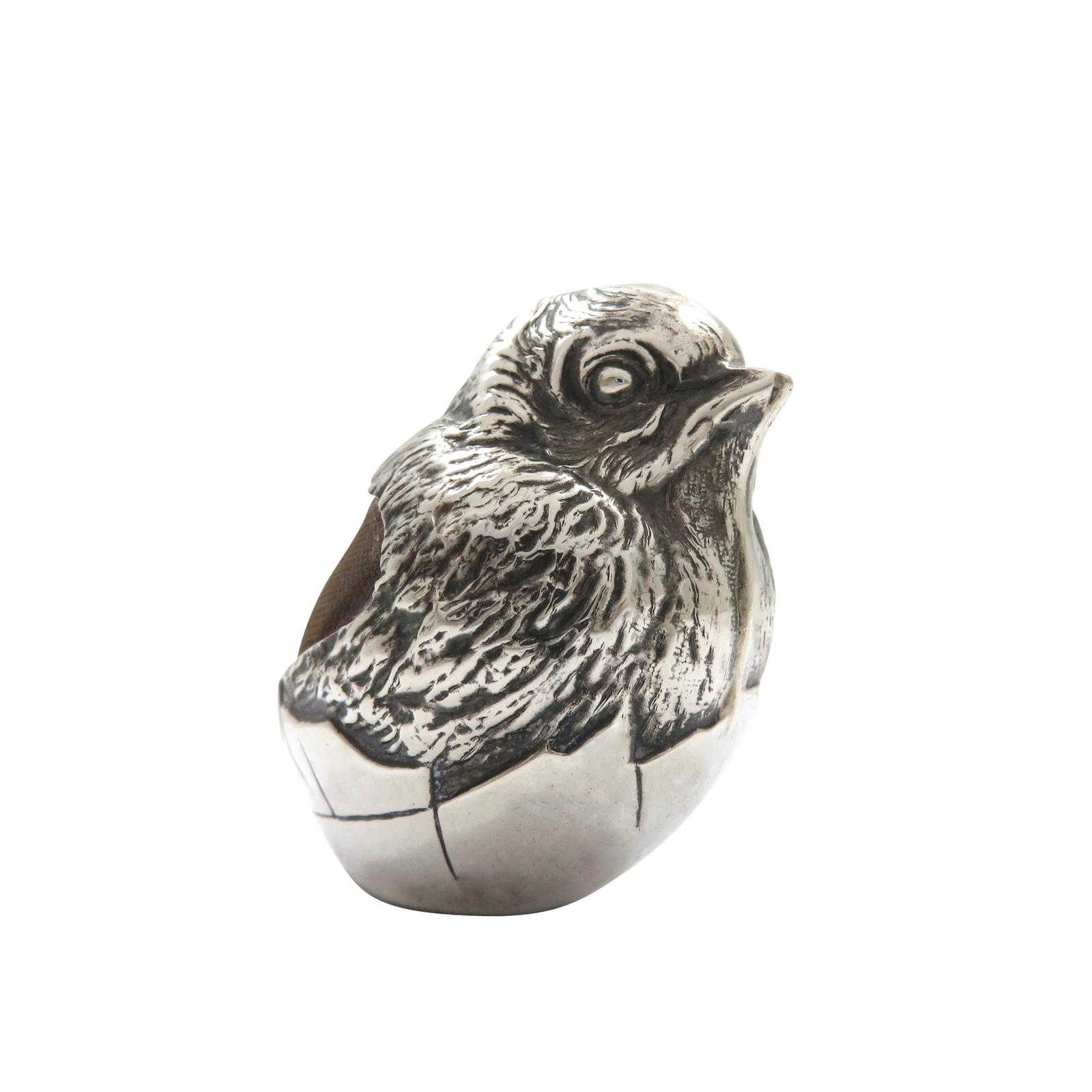 Antique George V Sterling Silver Hatching Chick Pin Cushion 1912