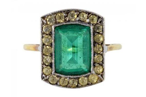 Antique Georgian 15ct Gold & Paste Stone Ring, Emerald Green & White Paste