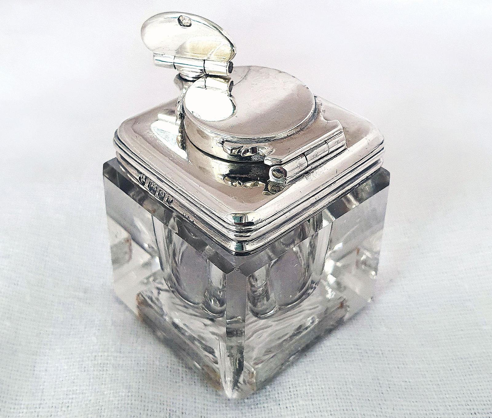 Antique Georgian 1829 Solid Sterling Silver & Glass Travelling Inkwell Ink Pot - 19th Century (1 of 10)