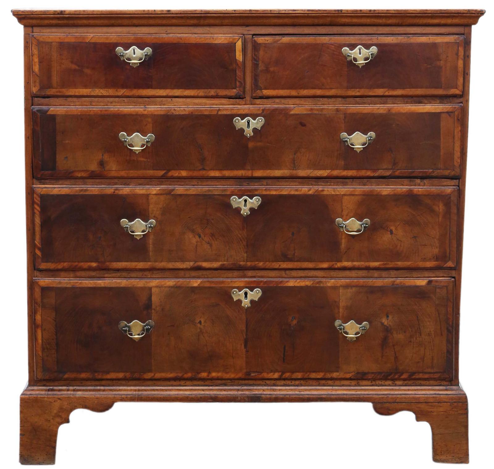 Antique Georgian 18th Century Oyster Walnut and Fruitwood Chest of Drawers (1 of 12)