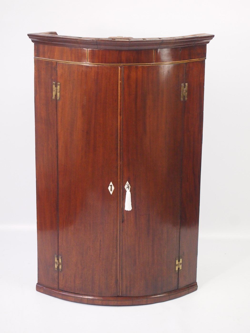Antique Georgian Bow Fronted Mahogany Corner Cupboard (1 of 1)