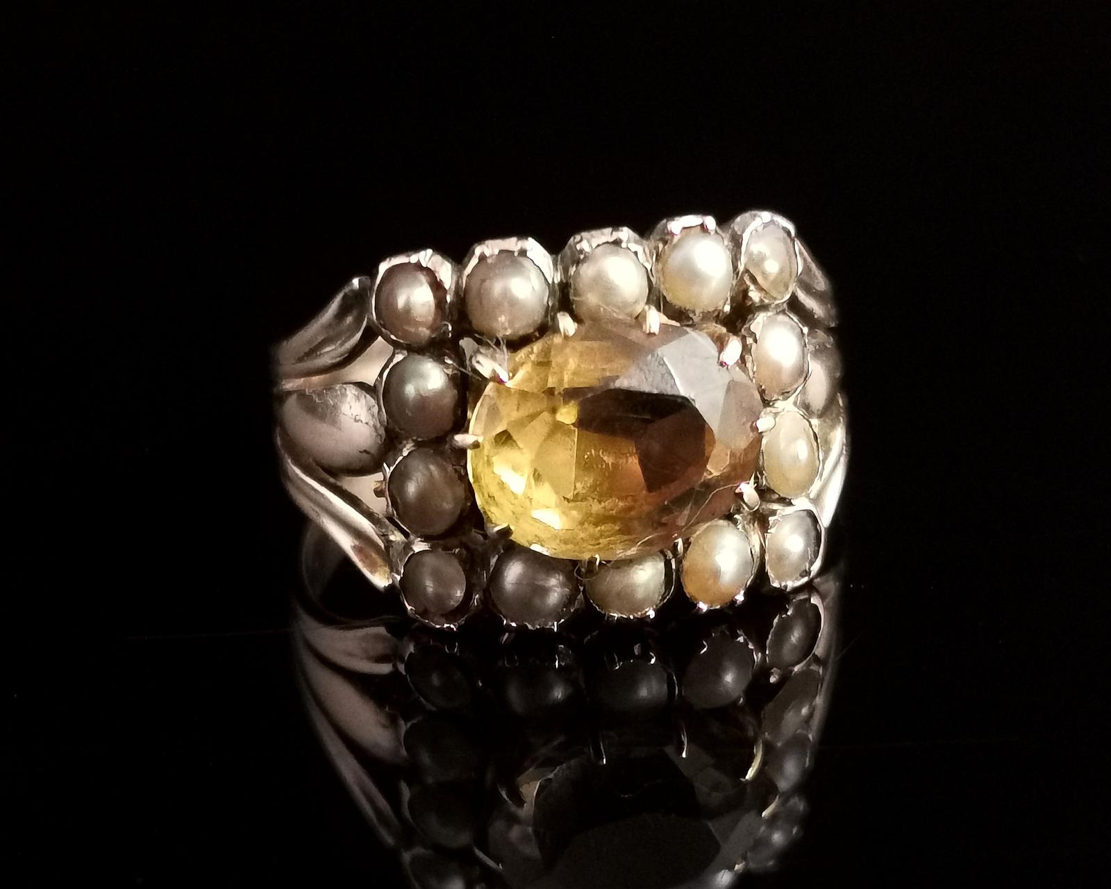Antique Georgian Citrine & Pearl Ring, 9ct Gold