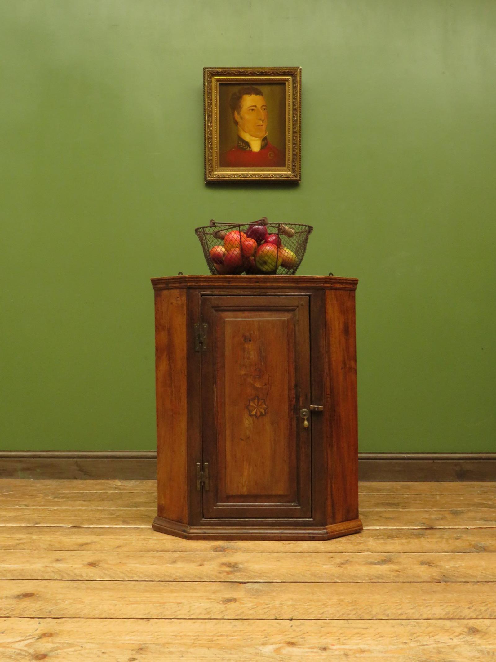 Antique Georgian Elm Corner Cabinet of Modest Proportions & Lovely Character