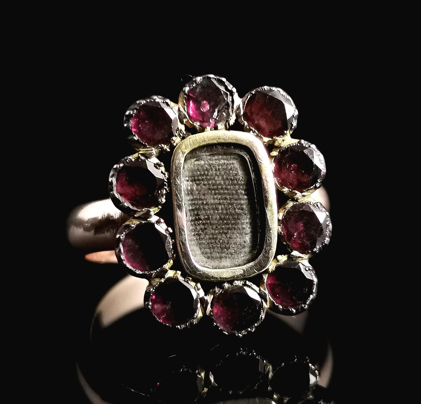 Antique Georgian Flat Cut Garnet Mourning Ring, 9ct Gold