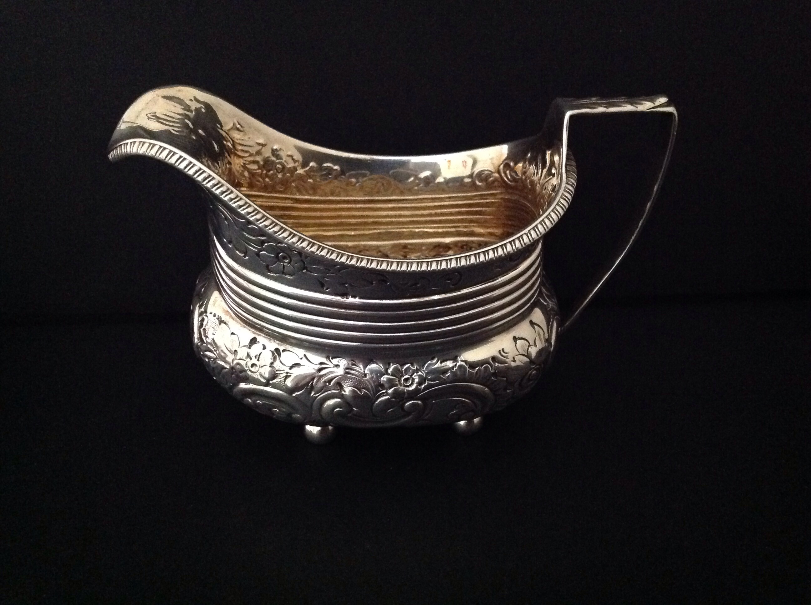 ANTIQUE GEORGIAN GILDED SILVER CREAMER - 1806