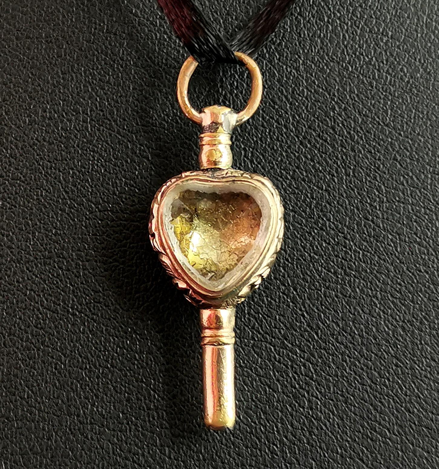 Antique Georgian Gold Heart Watch Key, Citrine & Bloodstone