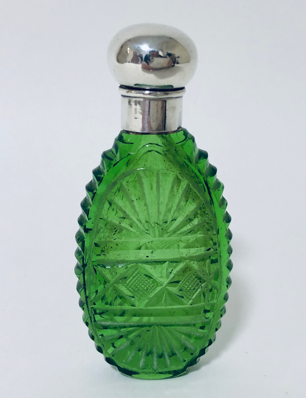 Antique Georgian Green Glass Scent Bottle Silver Top