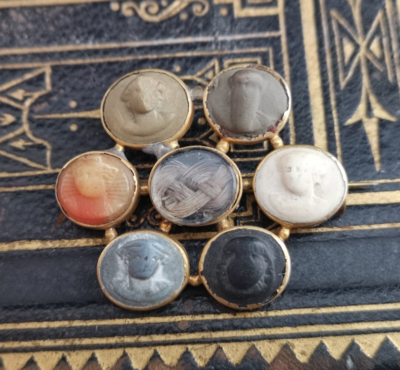 Antique Georgian Lava Cameo Mourning Brooch, 18ct Gold