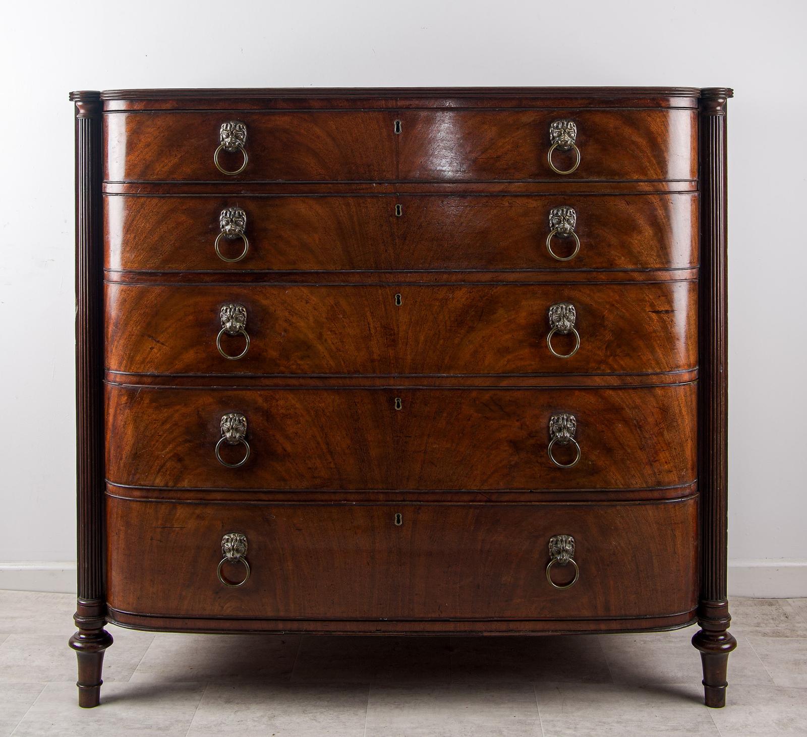 Antique Georgian Mahogany Bow Front Chest with Lion Mask Handles