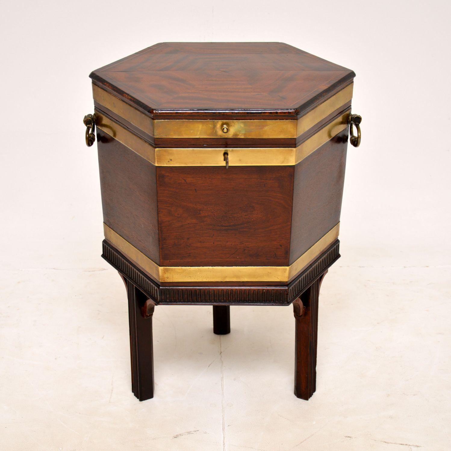 Antique Georgian Mahogany & Brass Wine Cooler / Cellarette