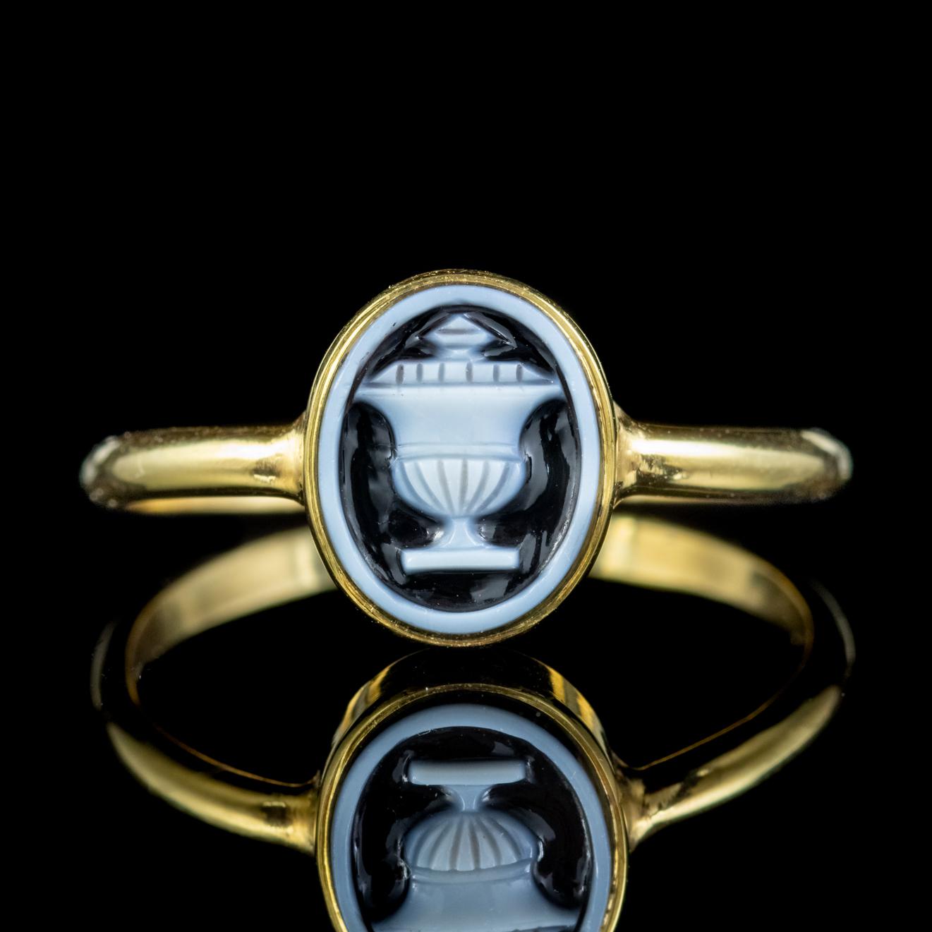 Antique Georgian Memento Mori Hardstone Urn Ring 18ct Gold with Locket c.1780