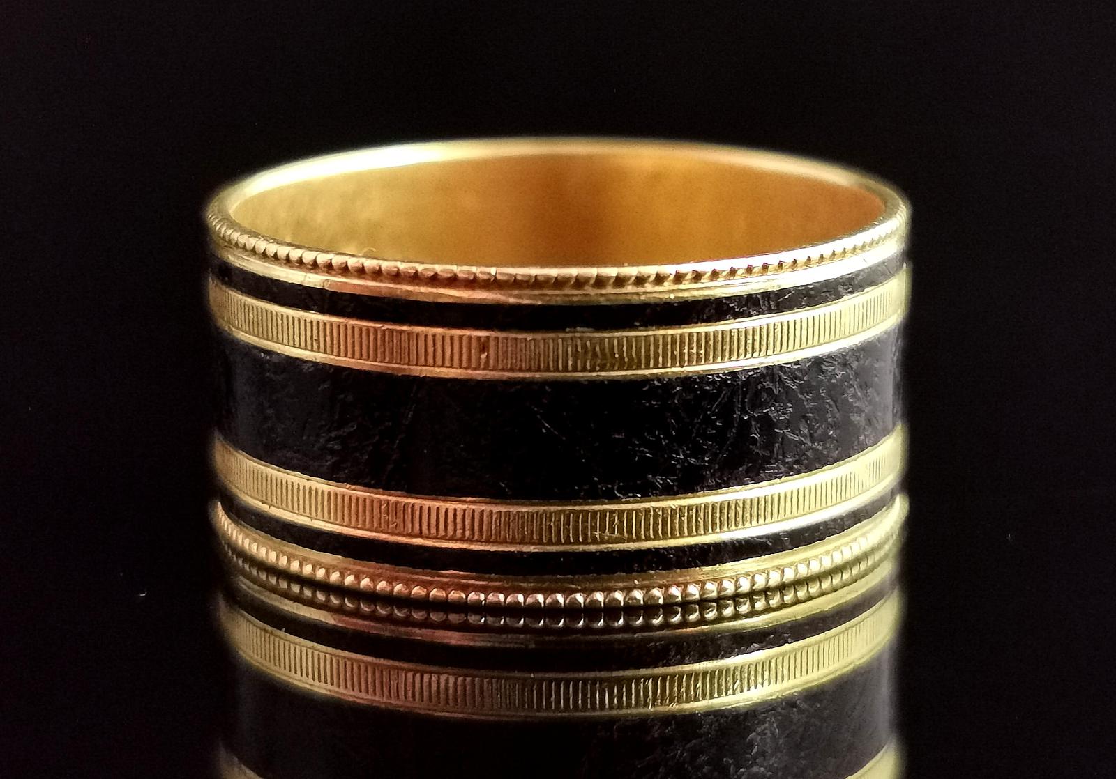 Antique Georgian Mourning Band Ring, 18ct Gold & Black Enamel