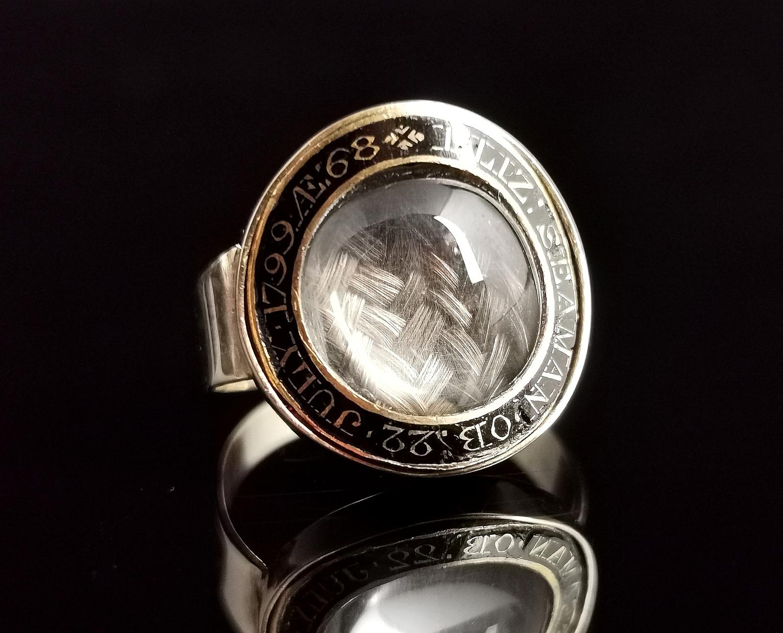 Antique Georgian Mourning Ring, 12ct Gold, Black Enamel & Hairwork
