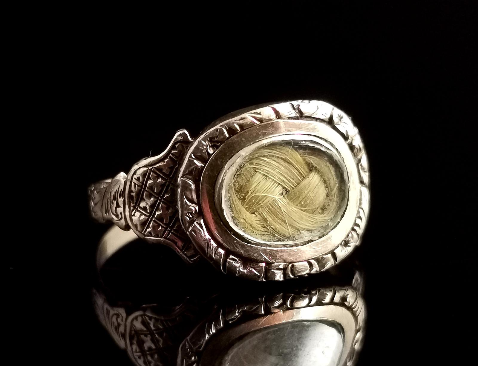 Antique Georgian Mourning Ring, 9ct Gold & Hairwork