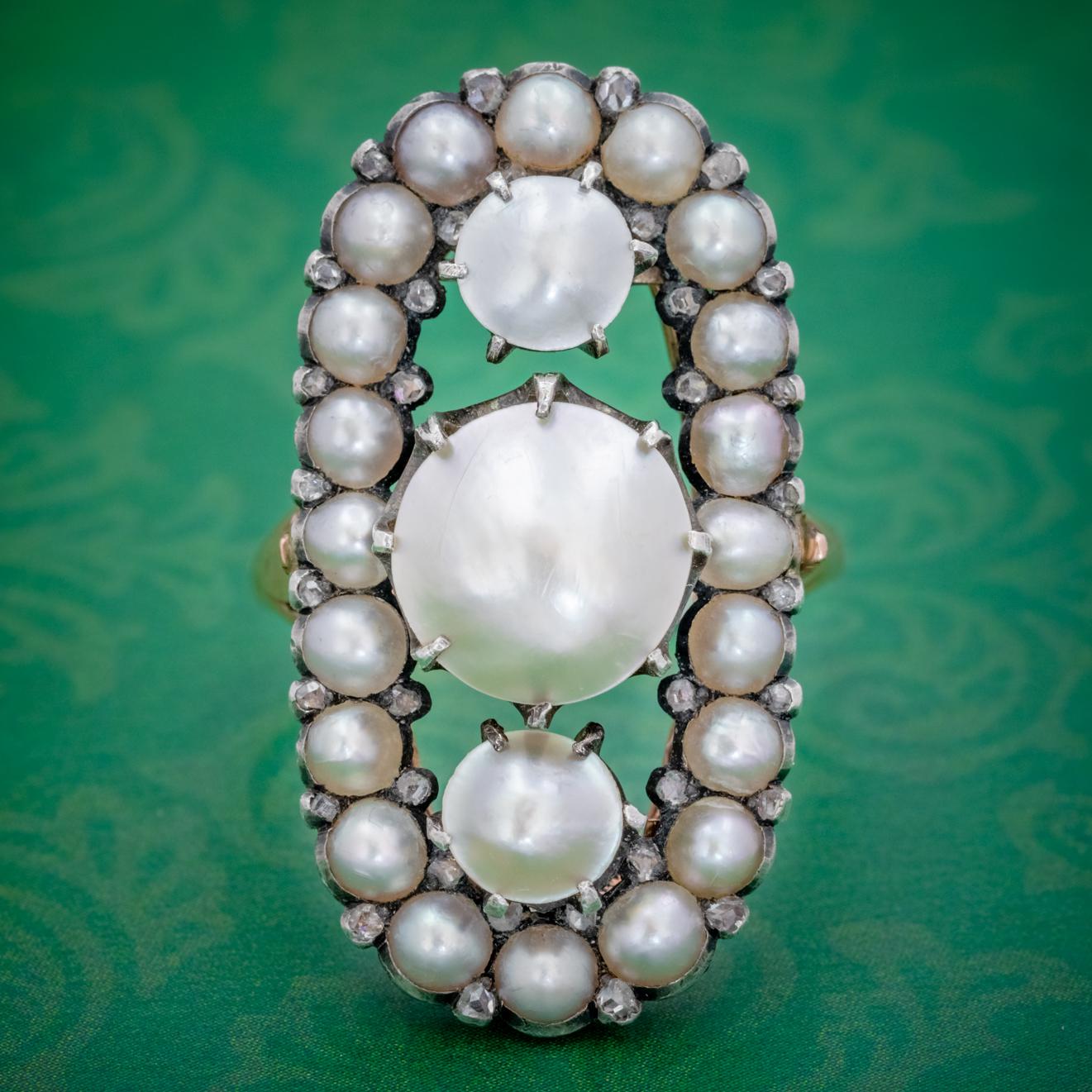 Antique Georgian Natural Pearl Diamond Ring Silver 18ct Gold c.1820