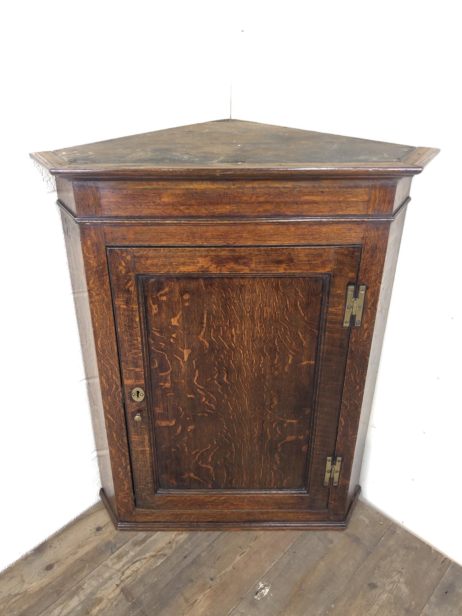 Antique Georgian Oak Hanging Corner Cupboard with Brass Knobs (1 of 9)