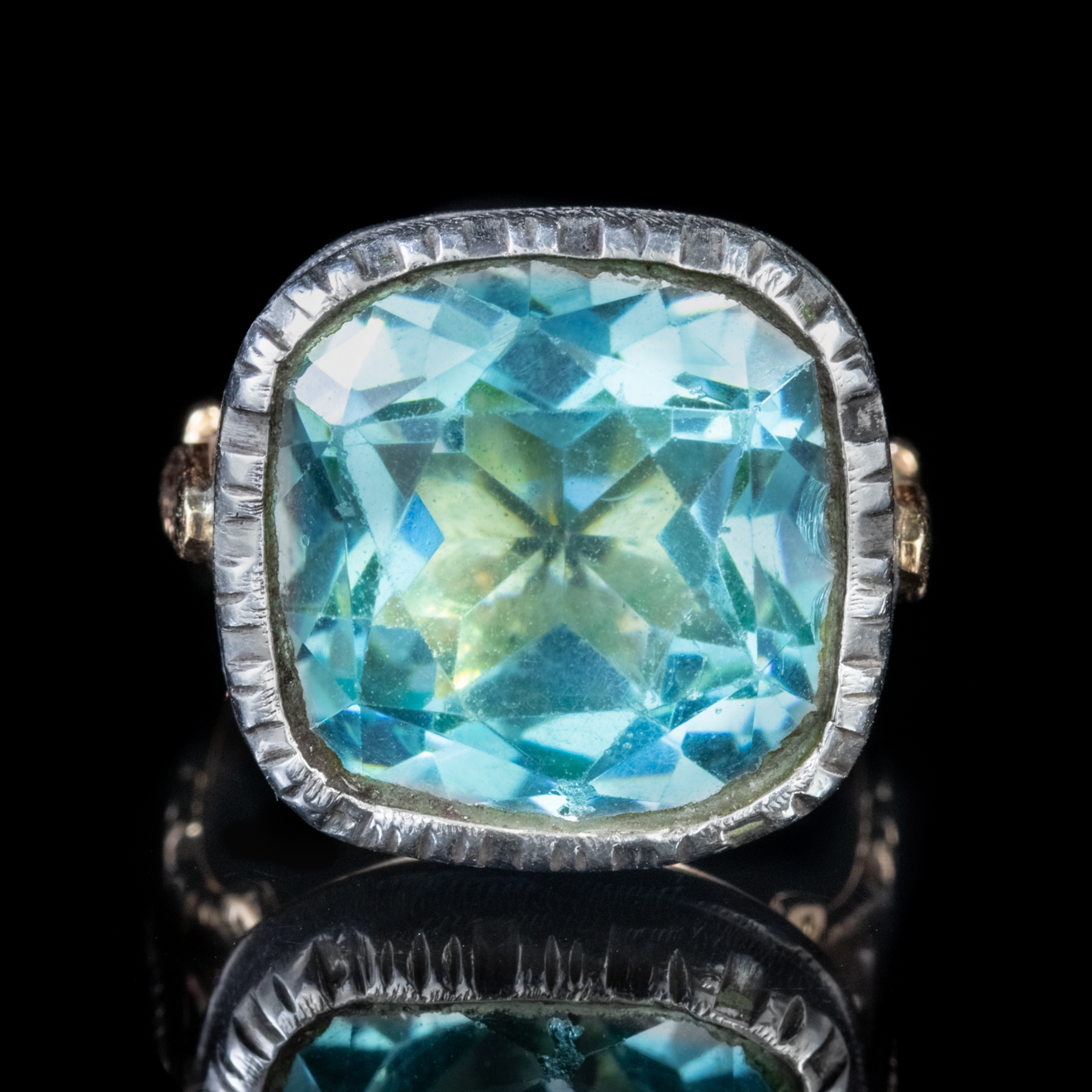 Antique Georgian Paste Aquamarine Ring 18ct Gold Silver c.1800