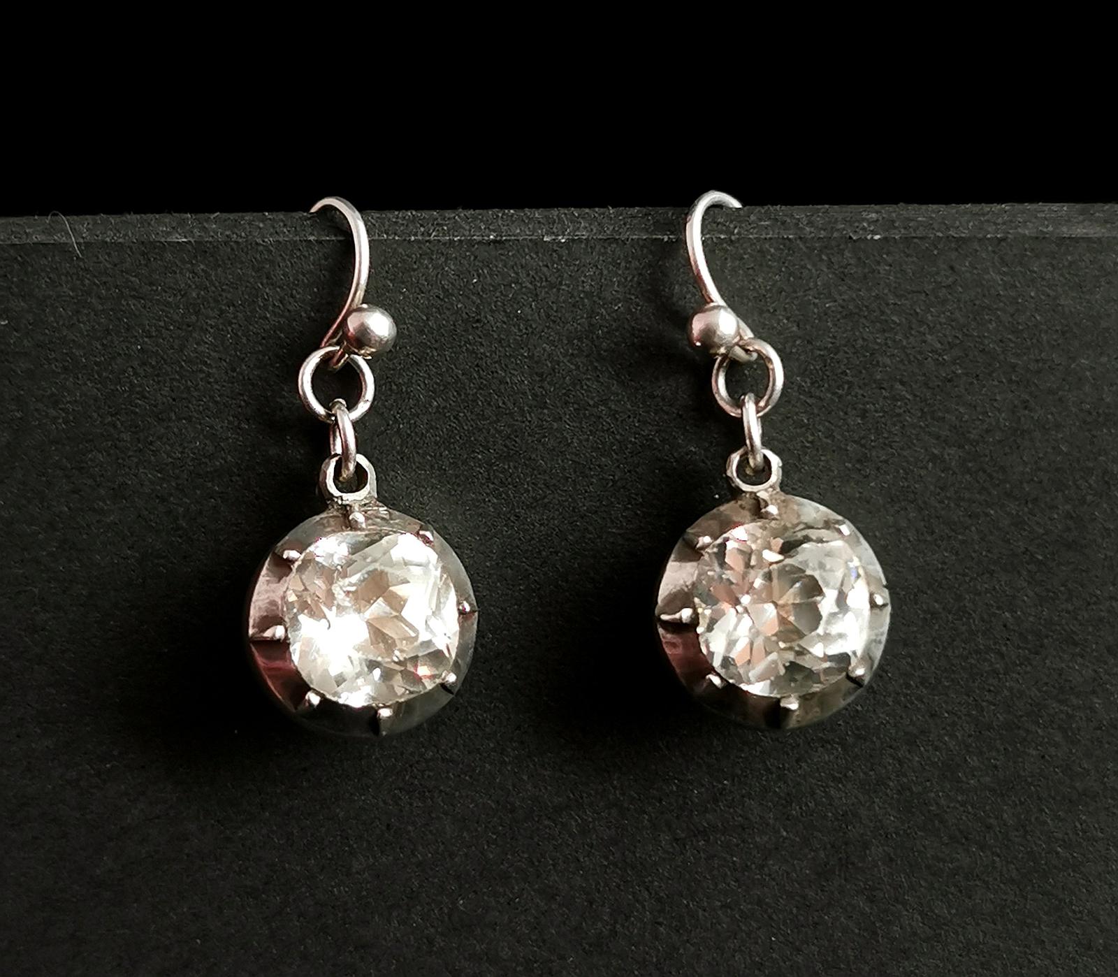 Antique Georgian Paste Drop Earrings, Sterling Silver