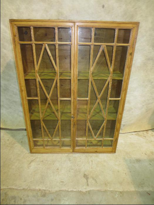 Antique Georgian Pine Wall Hanging Glazed Cabinet