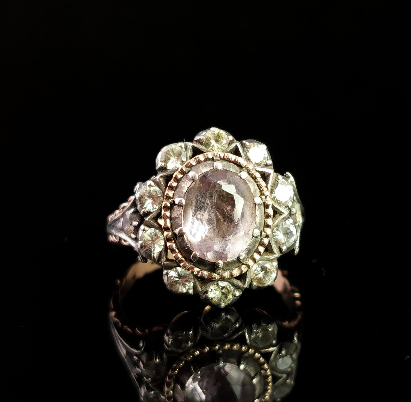Antique Georgian Pink Topaz Cluster Ring, 18ct Gold, Foiled Paste